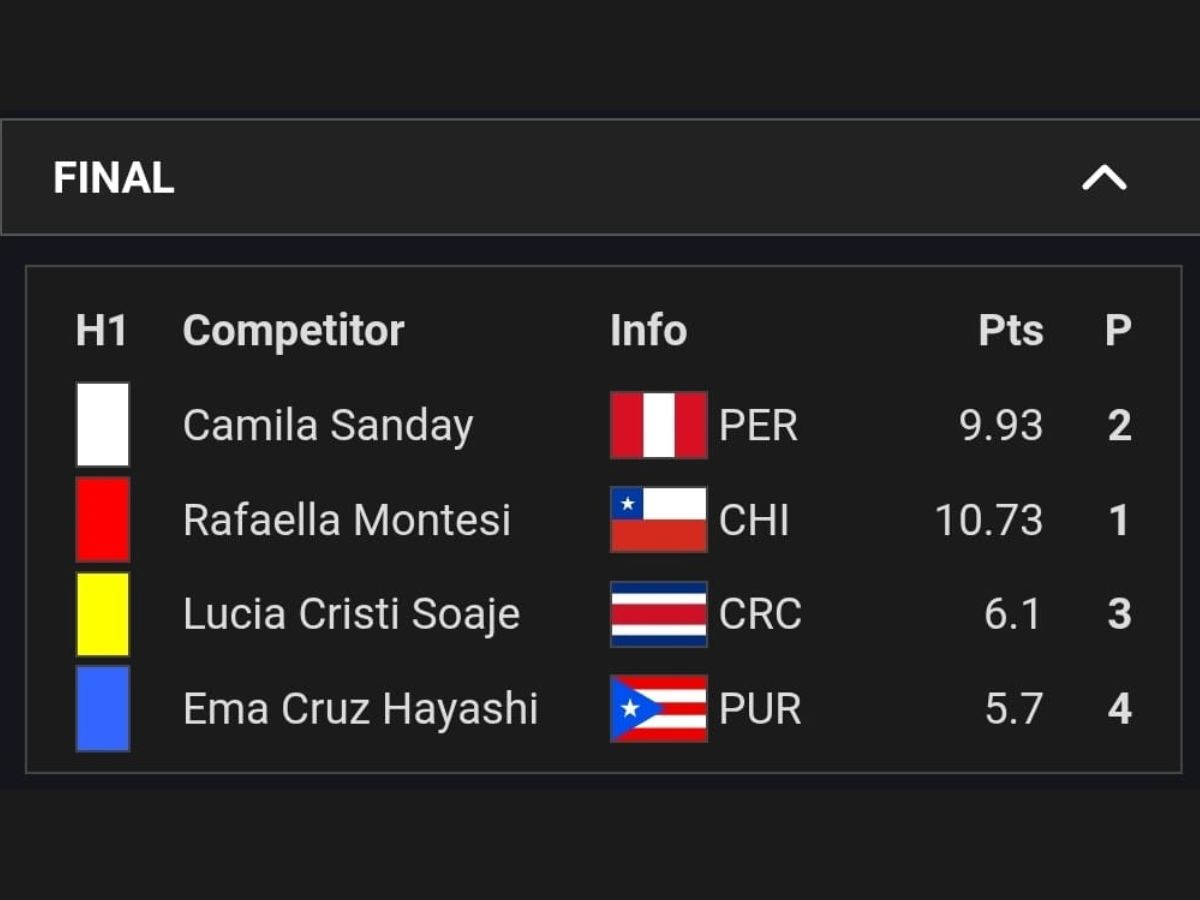 En la nación chapina Cristi Soaje, de 13 años de edad, ocupó el tercer lugar en Sub-18 con 6,1 puntos, mientras que en Sub-14 terminó en la misma casilla con 7,37 unidades.