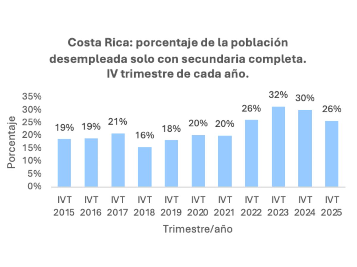 La mejora en el perfil educativo de quienes buscan empleo es evidente. No obstante, el mercado laboral también ha elevado el estándar mínimo de empleabilidad. Actualmente, no completar la secundaria representa una desventaja significativamente mayor que hace diez años. El crecimiento económico se concentra en sectores que demandan mayores competencias, lo que convierte a la educación en un requisito cada vez más determinante para acceder a oportunidades laborales.