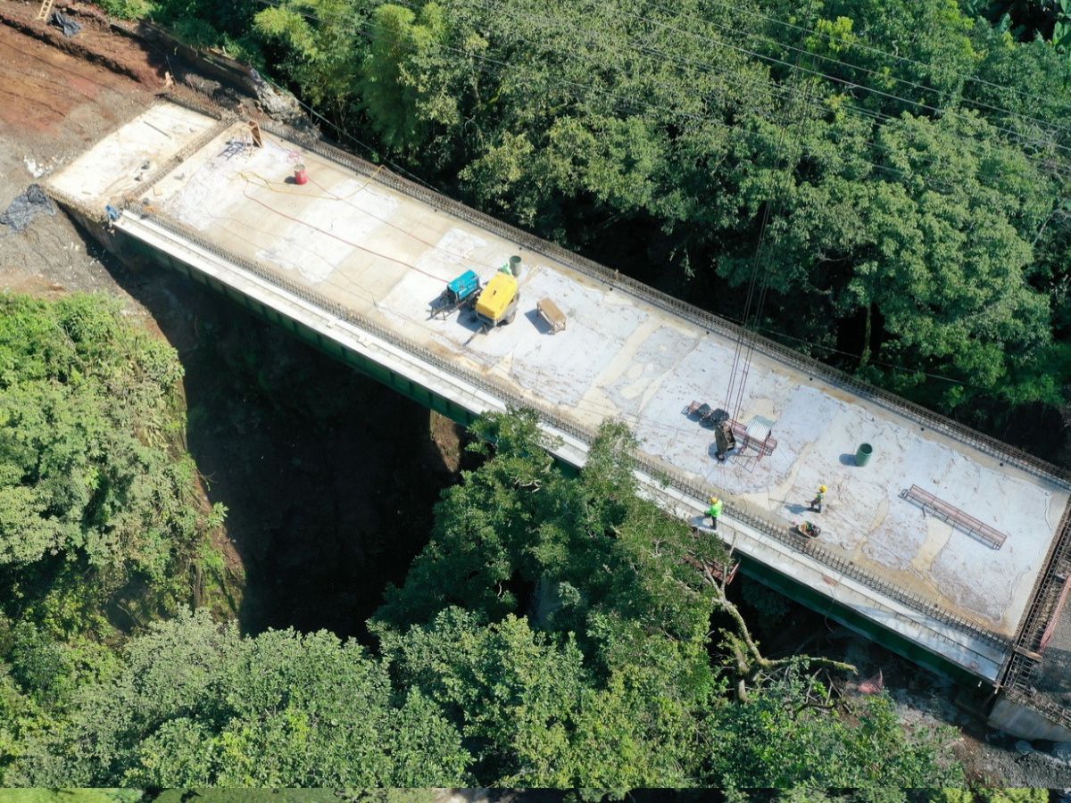 Con un avance del 52% general en el proyecto, quedó debidamente colocada la losa de concreto del nuevo puente sobre el río Poás, en Alajuela, sobre la ruta nacional 107.