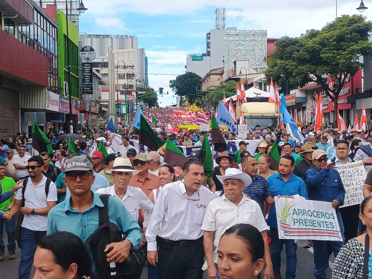 San José amaneció este martes con bloqueos, presas y una masiva presencia de manifestantes que marchan hacia Casa Presidencial, en una jornada nacional convocada por 57 organizaciones campesinas, sindicales y estudiantiles.