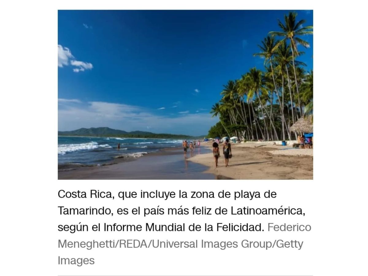 “Costa Rica, que incluye la zona de playa de Tamarindo, es el país más feliz de Latinoamérica, según el Informe Mundial de la Felicidad” indica el pie de la fotografía de Federico Meneghetti.