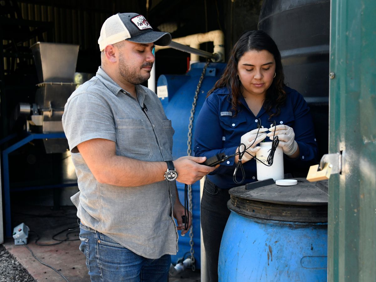 Investigador y estudiante de la UCR toman muestras del prototipo biodigestor que revaloriza residuos del café. Fotógrafa: Laura Rodríguez