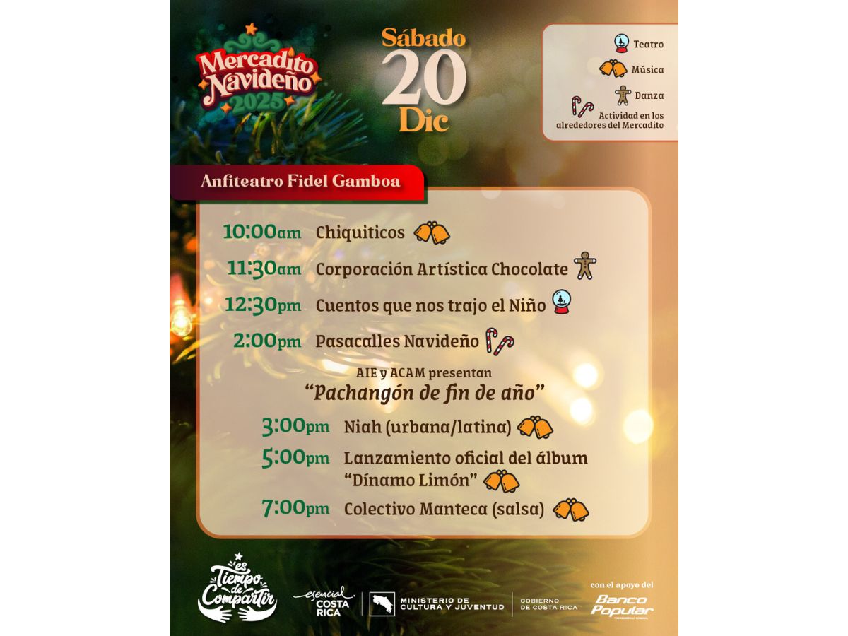 Por la tarde, AIE y ACAM presentarán el vibrante Pachangón de fin de año, con Niah, el lanzamiento del álbum Dínamo Limón y el Colectivo Manteca, que traerá el sabor de la salsa costarricense.