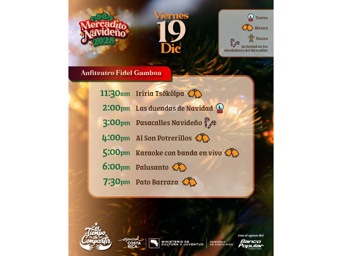 El Mercadito Navideño reunirá espectáculos de teatro, danza, música, talleres familiares, pasacalles y conciertos de artistas de amplia trayectoria.