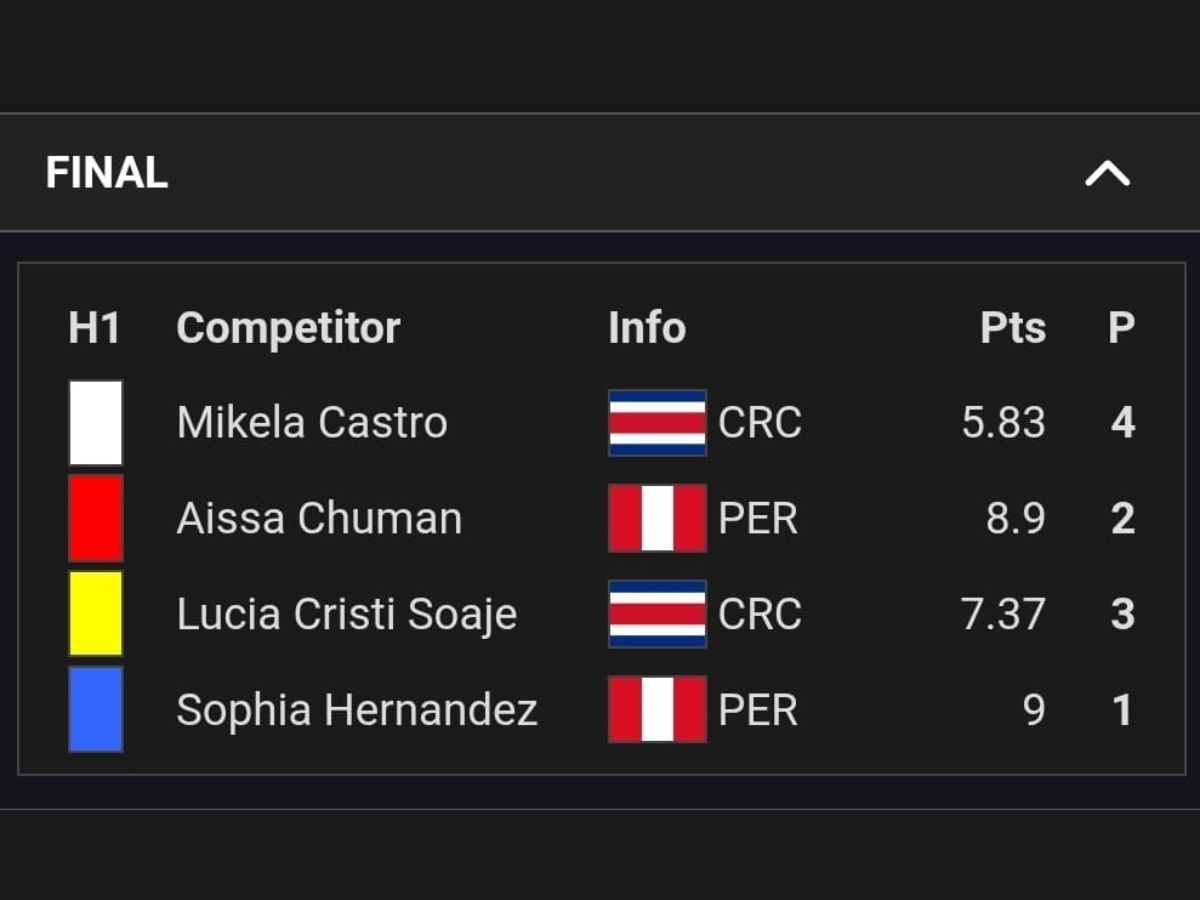 En la nación chapina Cristi Soaje, de 13 años de edad, ocupó el tercer lugar en Sub-18 con 6,1 puntos, mientras que en Sub-14 terminó en la misma casilla con 7,37 unidades.