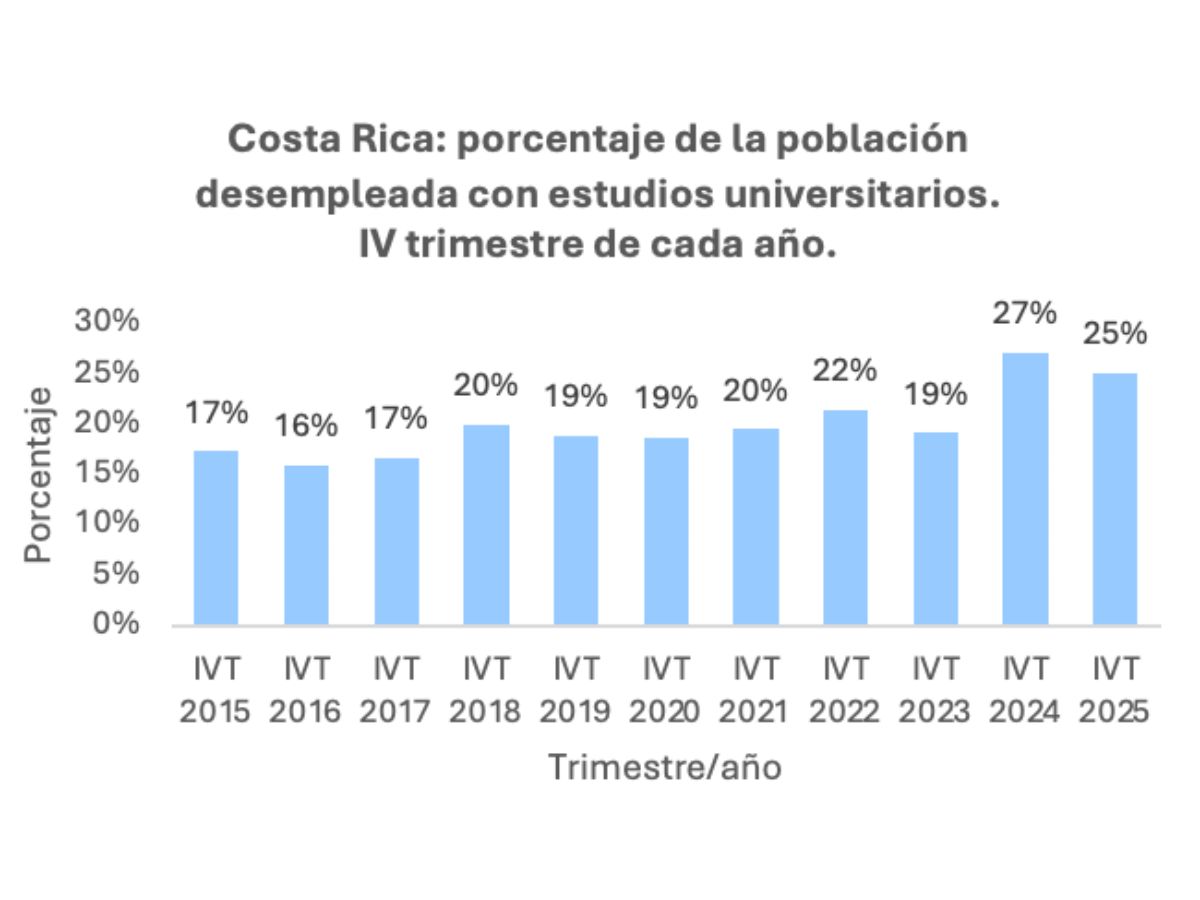 Paralelamente, aumentó la proporción de personas desempleadas con mayores niveles educativos. Quienes tenían secundaria completa pasaron de representar el 19% al 26%, mientras que aquellas con estudios universitarios —con o sin título— aumentaron del 17% al 25%.