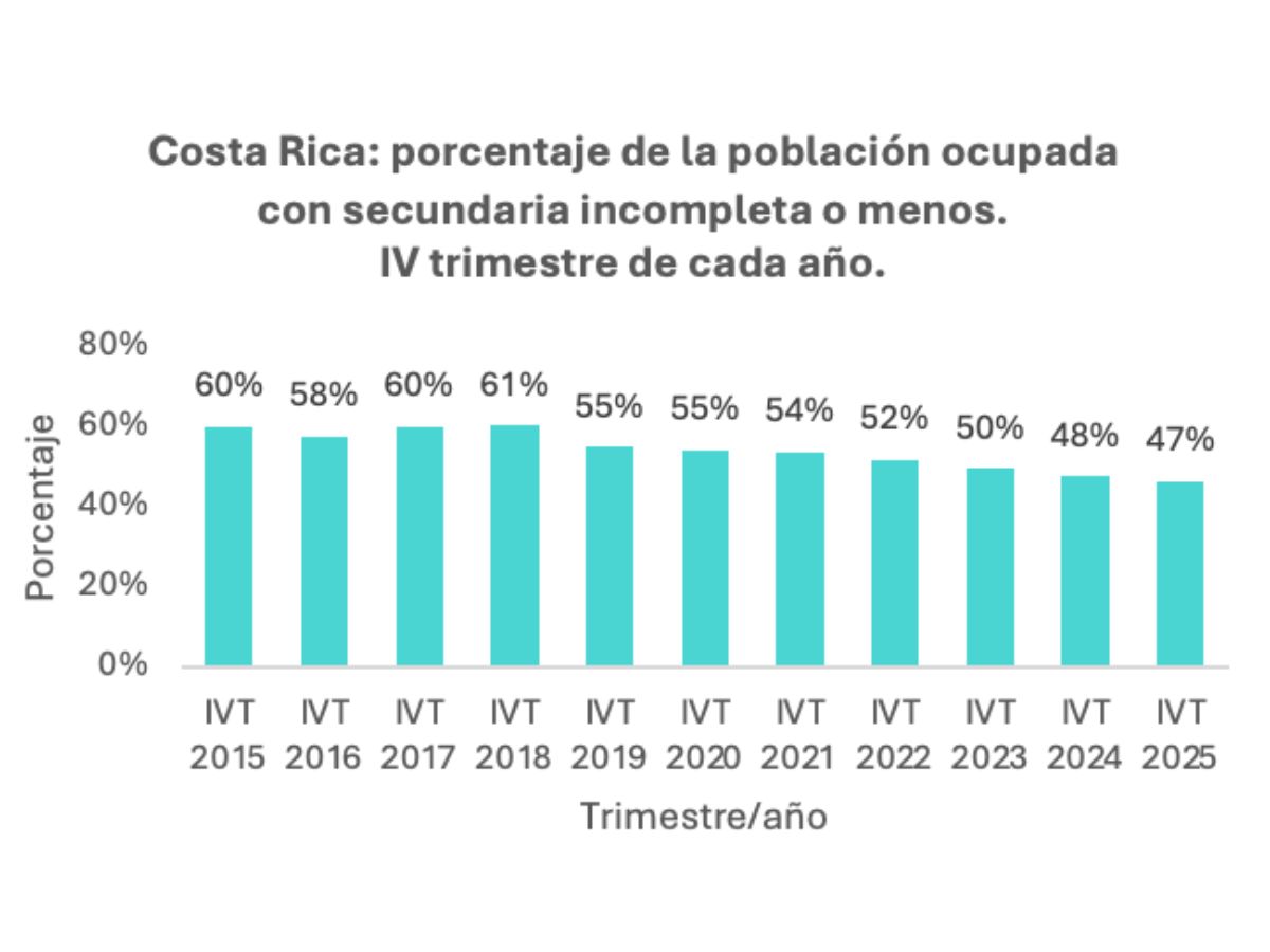 Estos resultados evidencian una mejora en el nivel educativo de la fuerza de trabajo costarricense. Asimismo, confirman que la educación se ha consolidado como un factor cada vez más determinante para la inserción laboral, en un contexto en el que la estructura productiva del país exige mayores niveles de calificación.