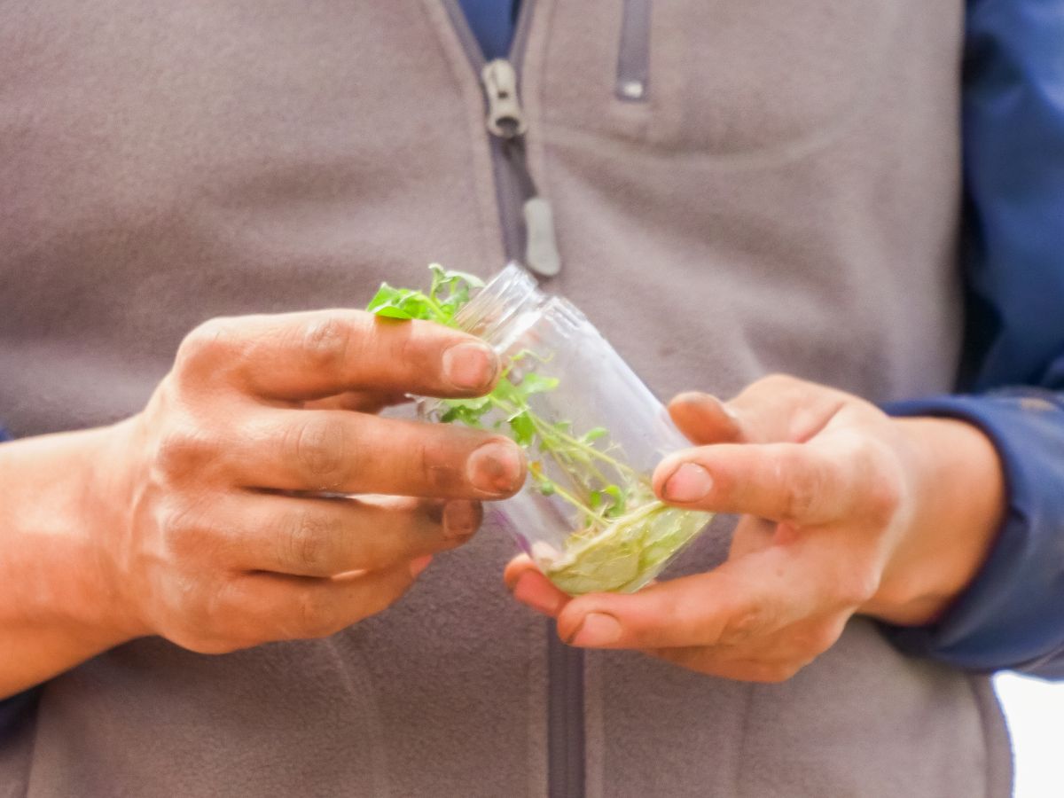 Además, se acompaña a los agricultores para que las vitroplantas tengan un buen desarrollo en invernadero y, posteriormente, en el traslado de estas al campo.