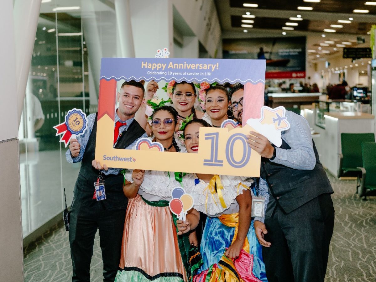 Guanacaste Aeropuerto y Southwest Airlines celebran hoy el décimo aniversario de operaciones de la aerolínea con una actividad especial para los pasajeros del vuelo WN817 proveniente de Houston.